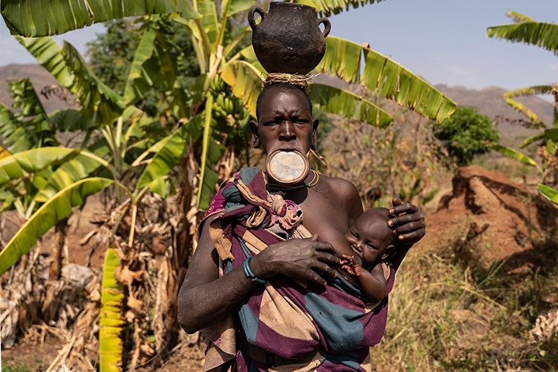 Además, las mujeres Surma tienen un alto valor social dentro de su comunidad: para casarse, un hombre debe entregar al padre de la mujer 30 vacas y un subfusil, lo que refleja la importancia de las tradiciones ancestrales y la organización social de la tribu.