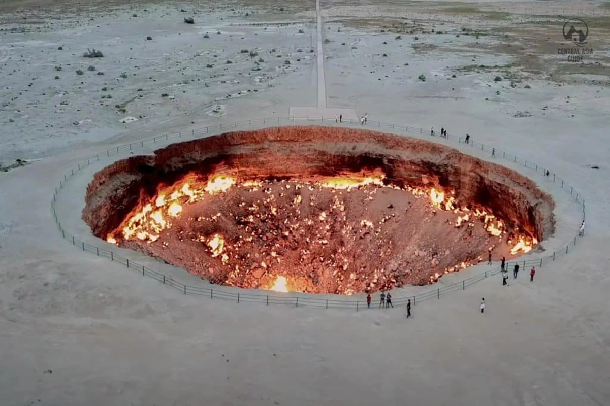 Al anochecer, llegada al famoso Cráter de Darvaza, conocido como la “Puerta del Infierno”. Cena barbacoa bajo las estrellas junto al cráter.