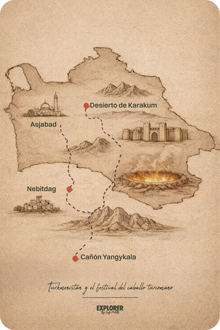 Este viaje fue diseñado para quienes buscan algo diferente: historia viva, arquitectura futurista, naturaleza extrema y celebraciones que solo pueden experimentarse una vez en la vida. Entre ellas, destaca el impresionante Festival del Caballo Turcomano, dedicado al legendario caballo Akhal-Teke, uno de los más antiguos y admirados del mundo.