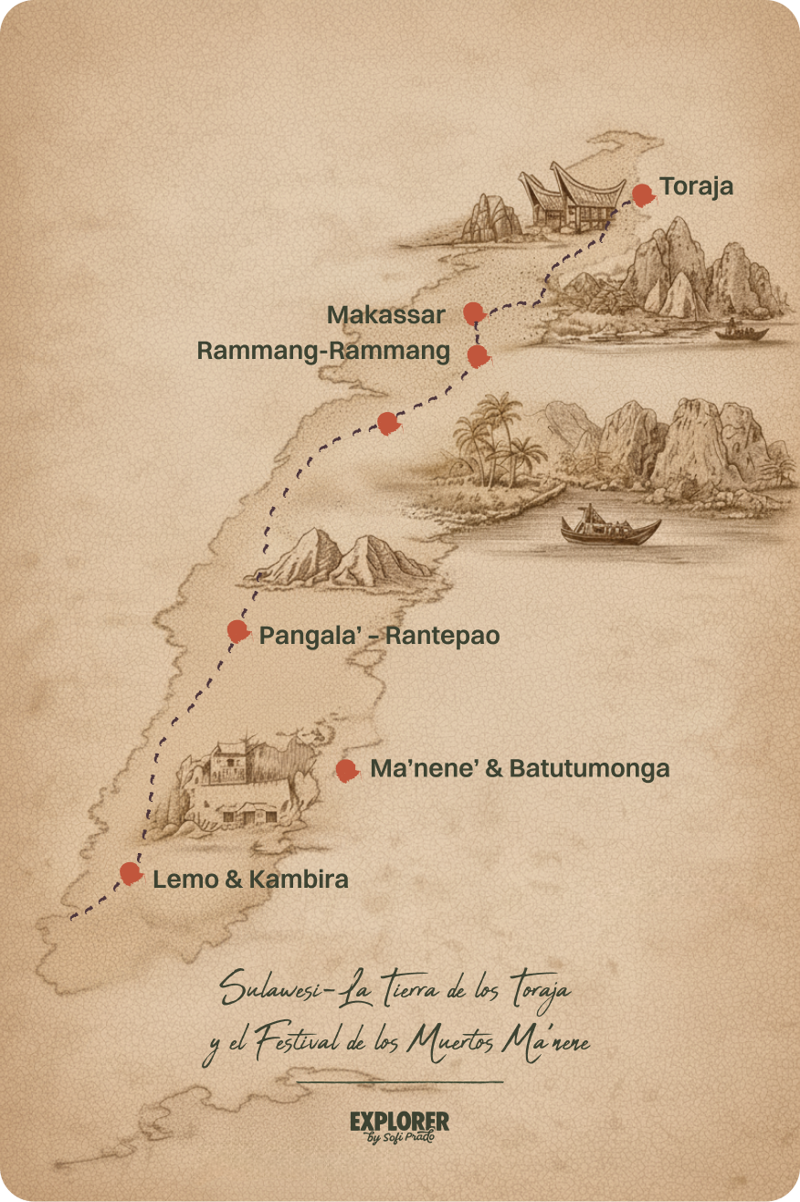 Tendremos la oportunidad de presenciar funerales toraja auténticos y el impactante Ma’nene’ – el Festival de la Muerte, una ceremonia donde los cuerpos de los ancestros son cuidadosamente lavados, vestidos y homenajeados, una tradición que refleja el profundo respeto de esta cultura por sus antepasados.